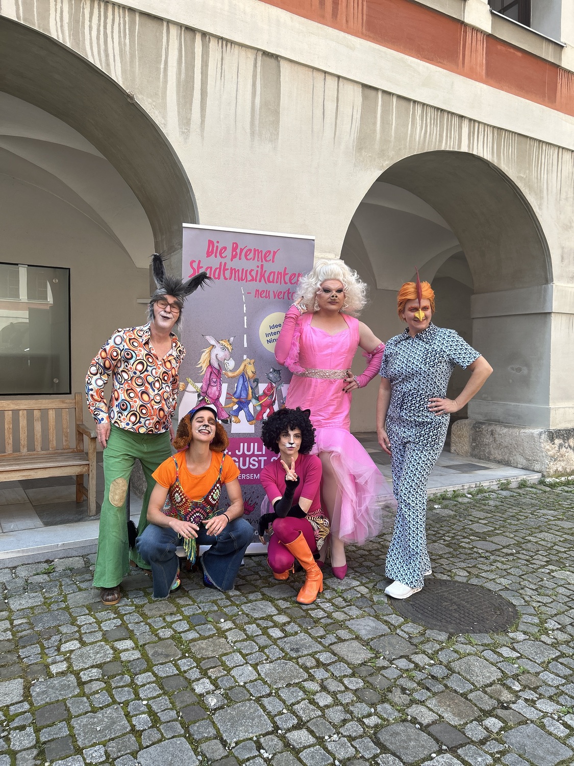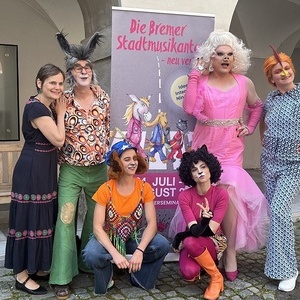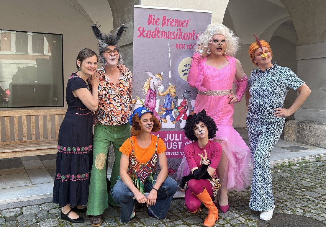 Ab 24. Juli (Premiere) verwandeln die vier Tiere des Grimmschen Klassiker „NeEsel, Hund, Schmatze und AuaHahn“ den Hof des Priesterseminars in Graz wieder in ein magisches Märchenland – und laden Kinder ab 3 Jahren und alle, die Märchen lieben, dazu ein, mit ihnen ein musikalisches Abenteuer zu erleben.