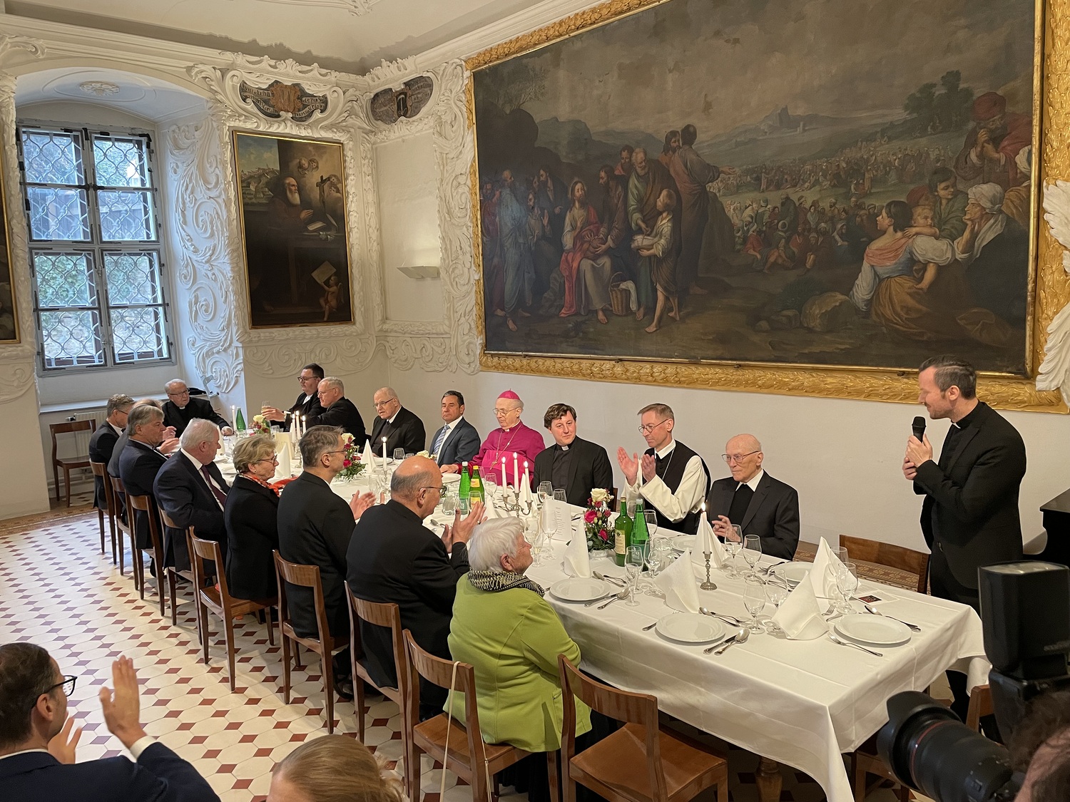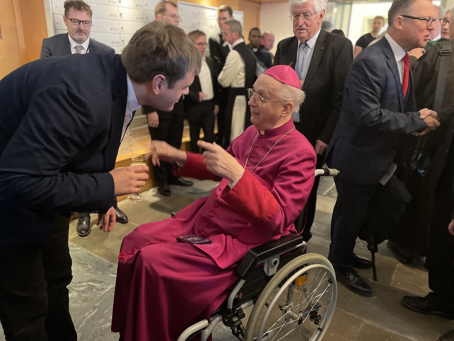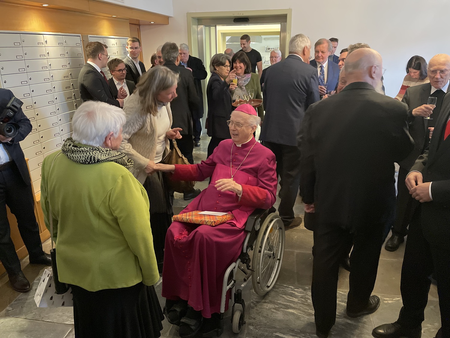 Das Leben von Bischof Egon Kapellari ist gekennzeichnet von Begegnungen. Von unzähligen Begegnungen genau genommen, was bei der 90er-Feier im Grazer Priesterseminar zu erleben war. Viele Wegbegleiterinnen und Wegbegleiter waren eingeladen, noch mehr sind gekommen, um dem ältesten Bischof Österreichs zum Geburtstag zu gratulieren. Und es gab besondere Geschenke: Eine Sonderausgabe des Magazins „Denken und Glauben“, die sich dem Werk des brillanten Theologen widmet. Und eine päpstliche Gratulationsurkunde, überreicht von Diözesanbischof Wilhelm Krautwaschl und Auxiliarbischof Johannes Freitag.