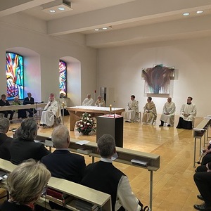 Die Bedeutung der Begegnungen griff Lukas Weißensteiner auf, Jungspriester und Zelebrant der Festmesse in der Kapelle des Priesterseminars; er wurde von Bischof Egon gefirmt. „Begegnungen lassen uns vom Ich zum Du und vom Du zum Wir kommen“, zitierte er Bischof Egon. Letztendlich sei jede Begegnung immer auch ein Treffen mit dem auferstandenen Christus. Begegnungen mit der Großmutter hätten den Gauben des jungen Egon Kapellari eröffnet, Begegnungen mit dem Religionslehrer hätten diesen Weg geschärft, über den der Vater „not amused“ gewesen sei. Ja, der Humor kam nicht zu kurz bei der Geburtstagsfeier, über der einmal mehr ein Leitwort von Bischof Egon schwebte: „Verstehen Sie mich nicht zu schnell.“ Jede Begegnung mit Bischof Egon wirkt nach, auch heute noch. Dafür und für die umsichtige Sorge um die anvertrauten Menschen dürfen wir dankbar sein, so Lukas Weißensteiner.