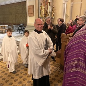 Bis auf den letzten Platz und darüber hinaus war die große Pfarrkirche in Pischelsdorf am frühen Abend des 11. März 2026 gefüllt, als die Bischofskonferenz zur heiligen Messe lud. Die Feier war von Pfarre und Seelsorgeraum toll vorbereitet worden und auch der Ort war dafür ideal, geht doch Pischelsdorf auf den Namen "Bischofsdorf" zurück, wie Pfarrer Michael Seidl erzählte. Der Feier stand Erzbischof Franz Lackner vor, die Predigt hielt der neue Wiener Erzbischof Josef Grünwidl. Mit dabei waren alle 15 Bischöfe in Österreich, die derzeit im Rahemn der österreichischen Bischofskonferenz im Haus der Frauen in St. Johann/Herberstein tagen.