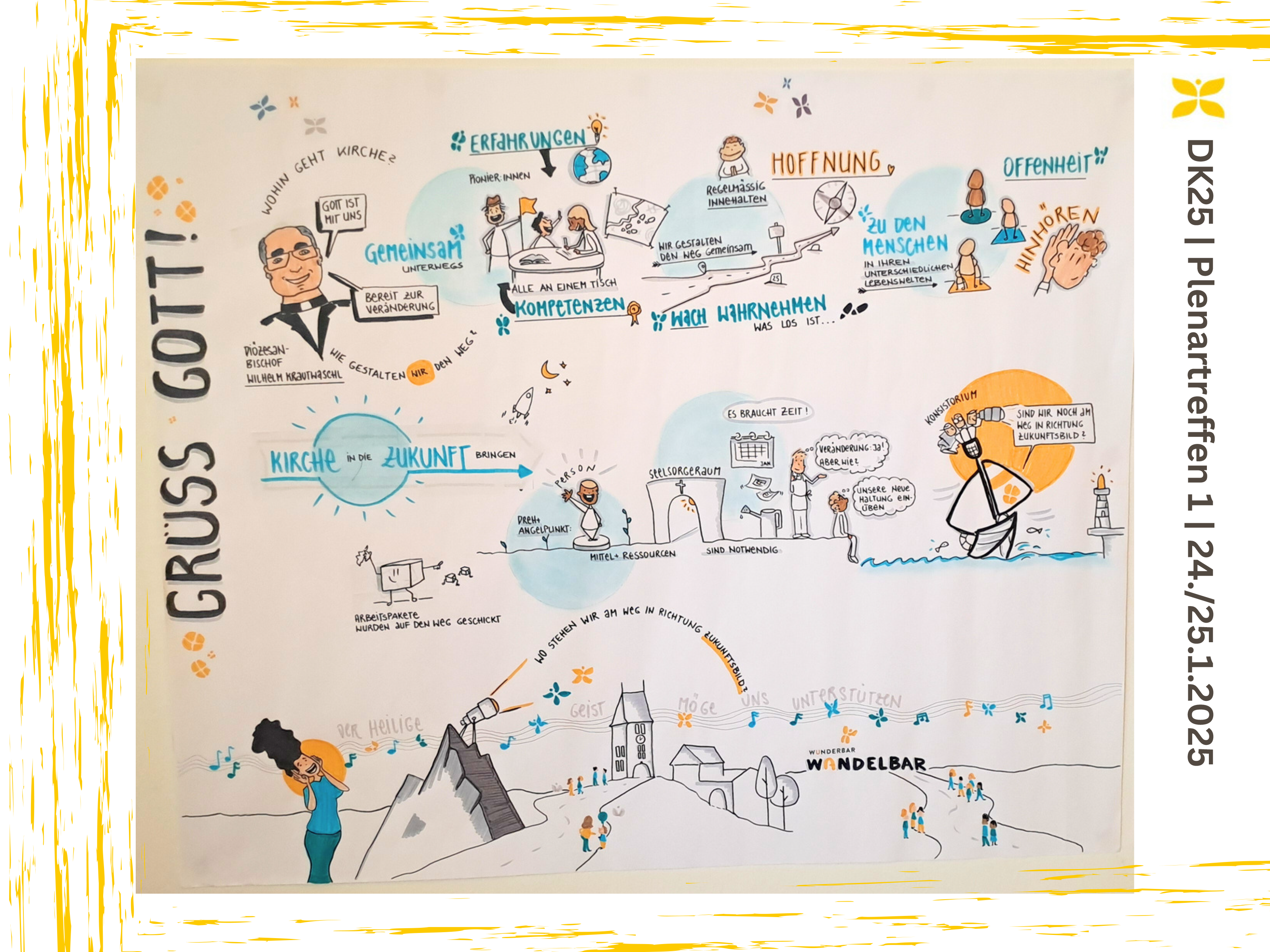 Das 2. Plenartreffen der Diözesankonferenz startet am 4. April 2025. Auch dieses Plenartreffen wird wieder mittels Grafic Recording gestgehalten.