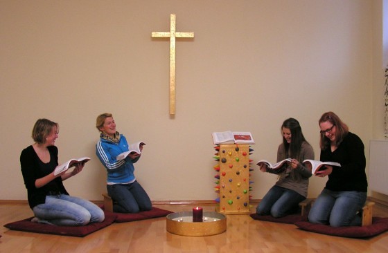 Das liturgische Herz des TheoZentrums ist der Raum der Stille. Dort treffen wir uns wöchentlich an unserem Zentrumstag um 12.00 Uhr zum gemeinsamen Mittagsgebet vor dem Mittagessen.