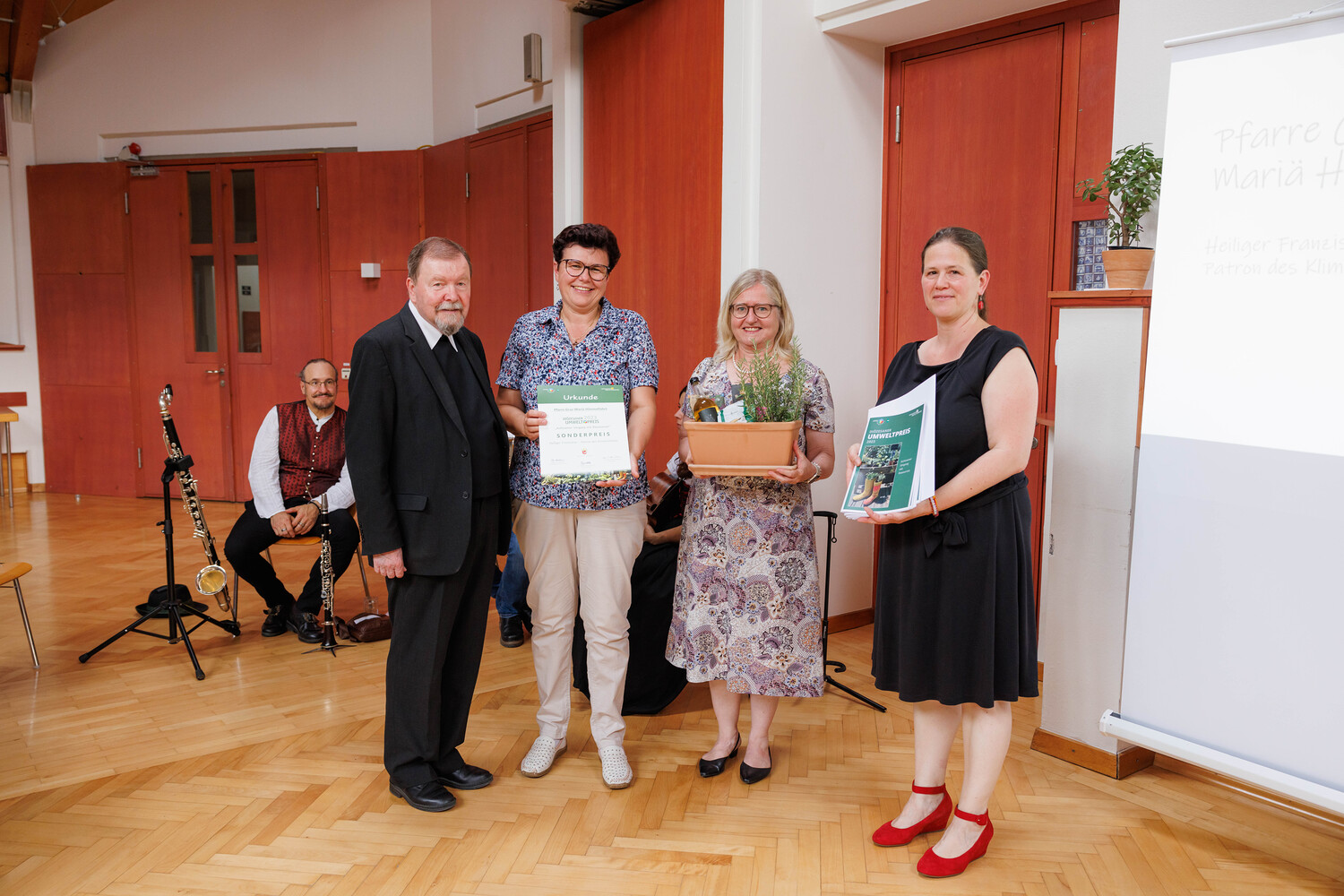 Der Sonderpreis Spiritualität ging an die Pfarre Graz-Mariä Himmelfahrt. Von den Lehren des Heiligen Franziskus - der auch als Patron des Klimaschutzes gilt - inspiriert, wurde beim Pfarrfest das Thema Klimaschutz aufgegriffen. Ein Klima-Quiz sowie Tipps für klimafreundliches Alltagsverhalten regten die Gäste zum Nachdenken und Diskutieren an. Entsprechend dem Vorbild des Heiligen Franziskus wurde damit auf eine sparsame Lebensweise, aber auch auf den Reichtum der Schöpfung hingewiesen.