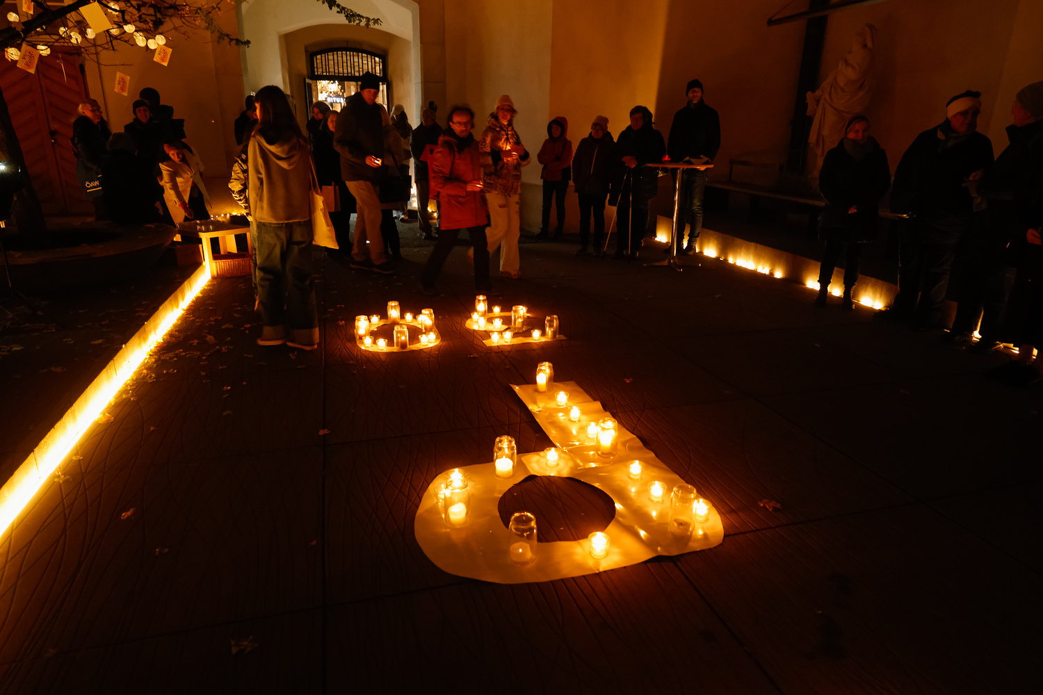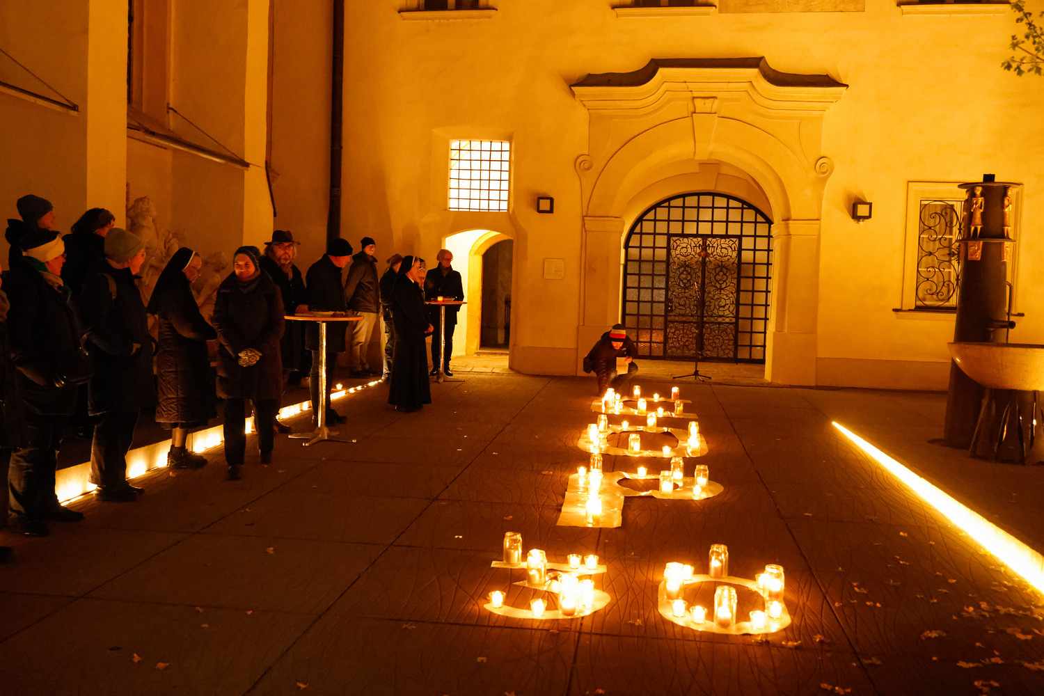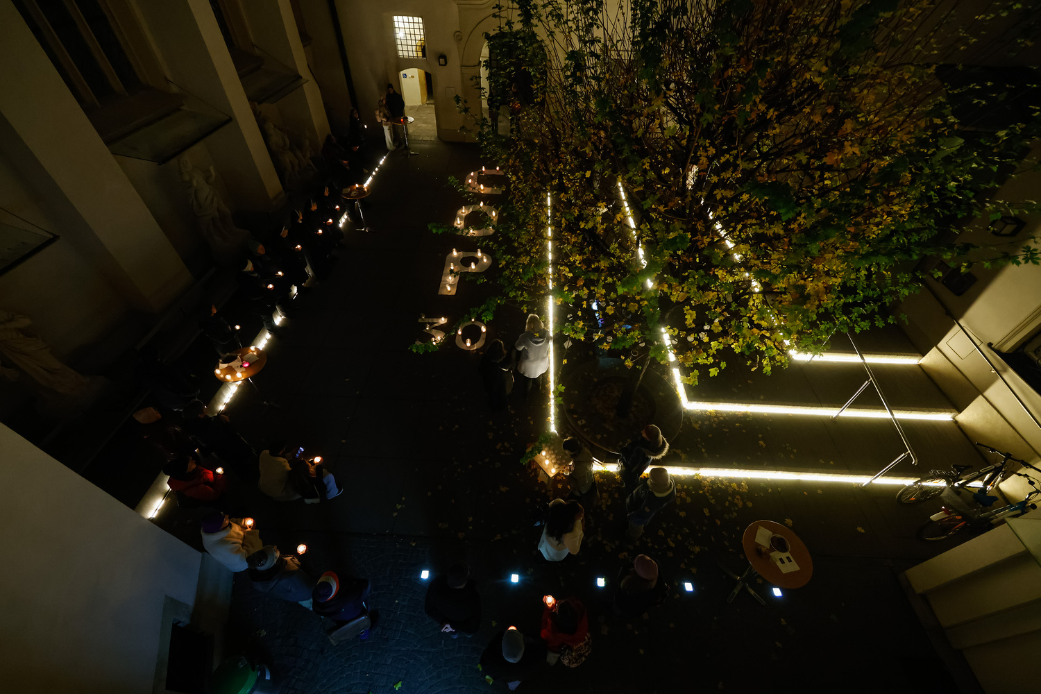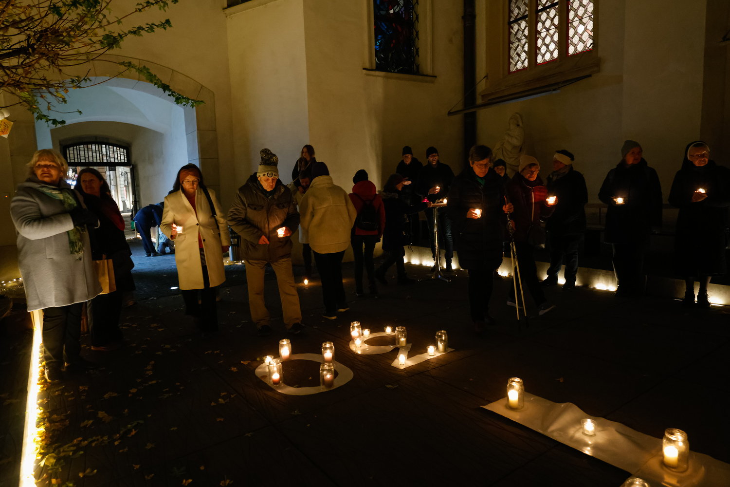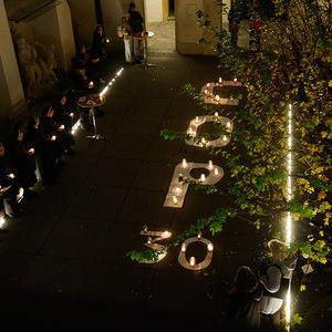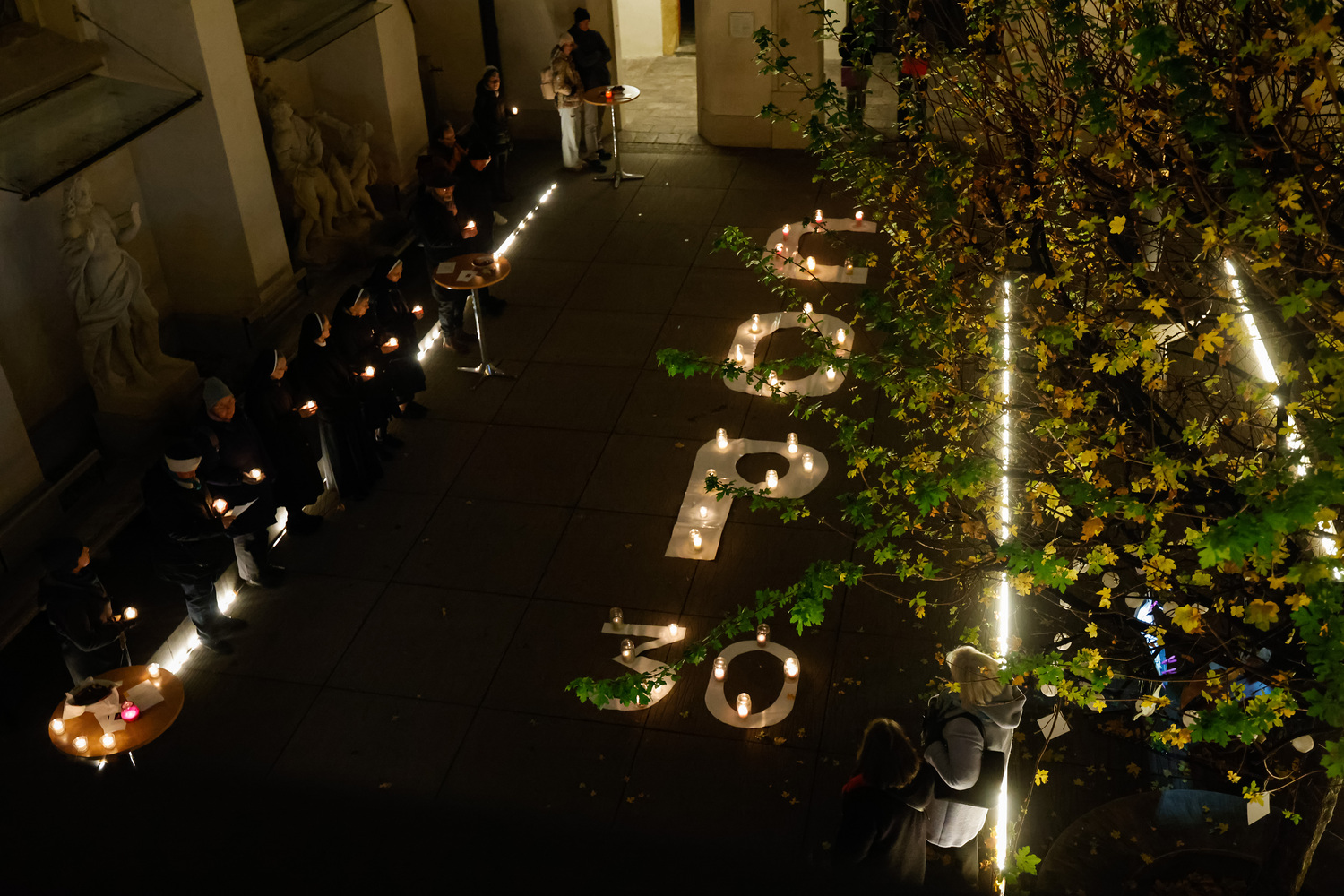 Im Brunnenhof der Stadtpfarre Graz erstrahlte ein mit Kerzen geformter COP30-Schriftzug. Die brennenden Kerzen leuchteten für gute Entscheidungen im Sinne aller Menschen, Nationen, Religionen und Völker - auch der Armen, Kranken, Unterdrückten, Schwachen und nachfolgenden Generationen, die am meisten unter der Klimakrise leiden (werden).