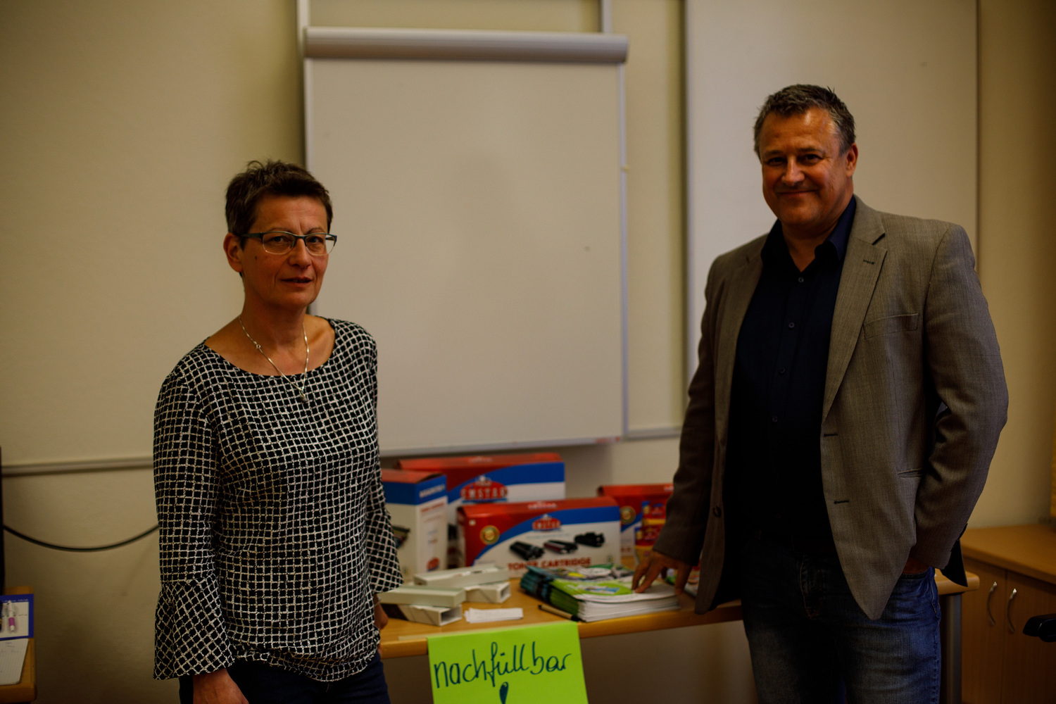 Einige Kolleginnen stellten persönlich nachhaltige und bewährte Produkte vor: nachfüllbare Textmarker (seit 15 Jahren im KBW im Verwendung!), den Locher ohne Metallklammern, das Fairphone (reparierfähiges Handy) und, last but not least, viele Tipps für eine gesunde und ökologische Sitzungsverpflegung (Liste im Anhang).