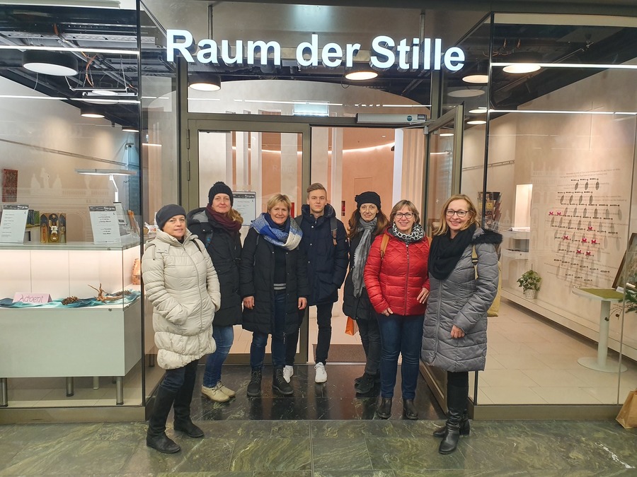 Bei diesem Treffen erfuhren wir auch Näheres über den Raum der Stille am Wiener Hauptbahnhof. Dieser Raum ist ein überkonfessionelles Angebot für Menschen, die in der Betriebsamkeit des Hauptbahnhofes zur Ruhe kommen (möchten).