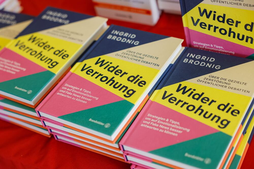 Anschaulichst, mit zahlreichen alltagspolitischen Beispielen, ging Brodnig schließlich auf die „Taktiken der Meister der Beleidigungen“ ein, deren „Methoden der Eskalation“ nichts anderes als „die Zerstörung öffentlicher Debatten“ anvisierten. Als notwendigen Gegenpol packte Brodnig ihr hilfreiches Rüstzeug aus, um der Härte von Fake News und Emotionalisierung beizukommen: Strategien wie die Entwicklung von Reflexionsfähigkeit und Achtsamkeit sich selbst und dem/der Anderen gegenüber sowie praktische Tipps wie Faktenchecks, um Eskalationsmuster zu erkennen und mit Klarheit darauf reagieren können.