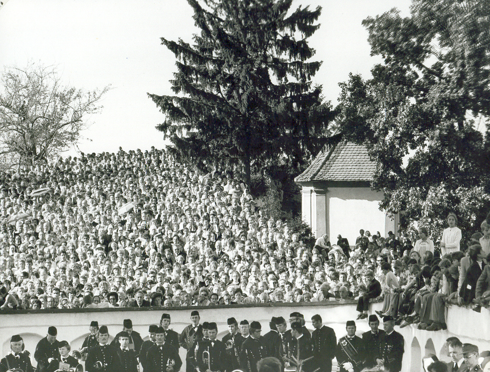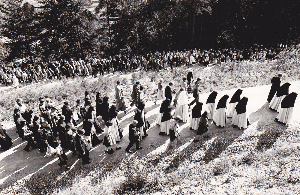 Dr. Zeck, einigen Mitschwestern von Mariazell und einer unzählbaren Menschenmasse den Heiligen Berg hinaufzogen.