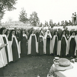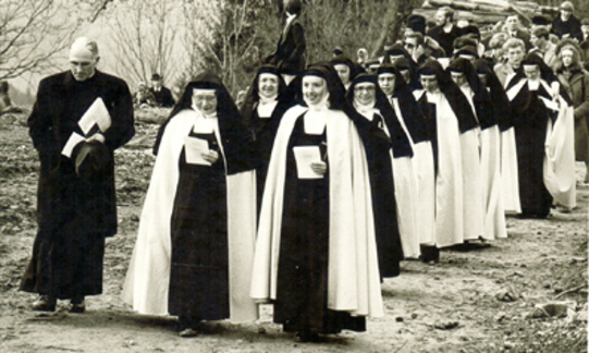 zu der die sechs Gründungsschwestern begleitet von Hr. Pfarrer Msgr.