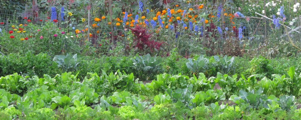 In unserem großen Garten ziehen wir Blumen für die Kirche und Gemüse für den Eigenbedarf.