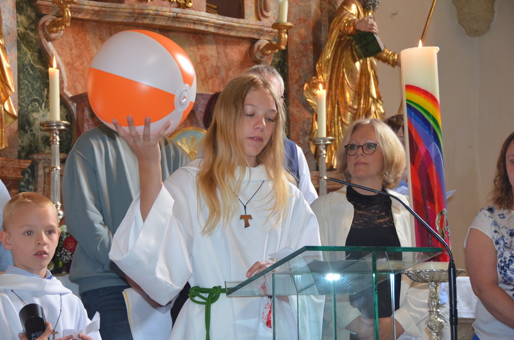 Passend zum nahen Ferienbeginn gestaltete der Familienkreis der Pfarre eine Familienmesse mit Reisesegen. Dabei wurden noch einmal die Erstkommunionlieder unter der Leitung von Katharina Wesener gespielt und gesungen.