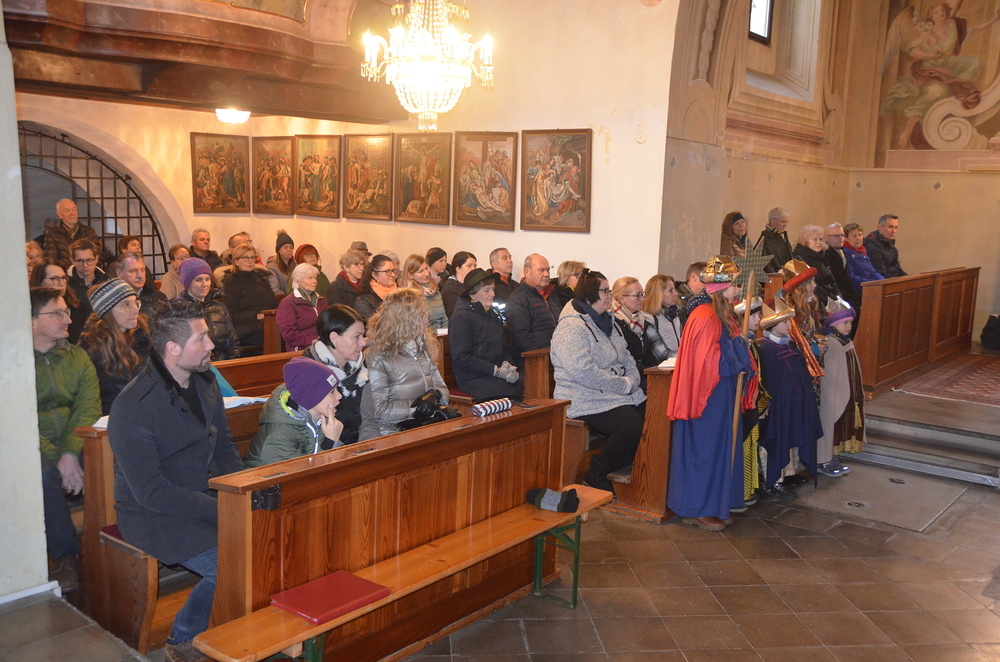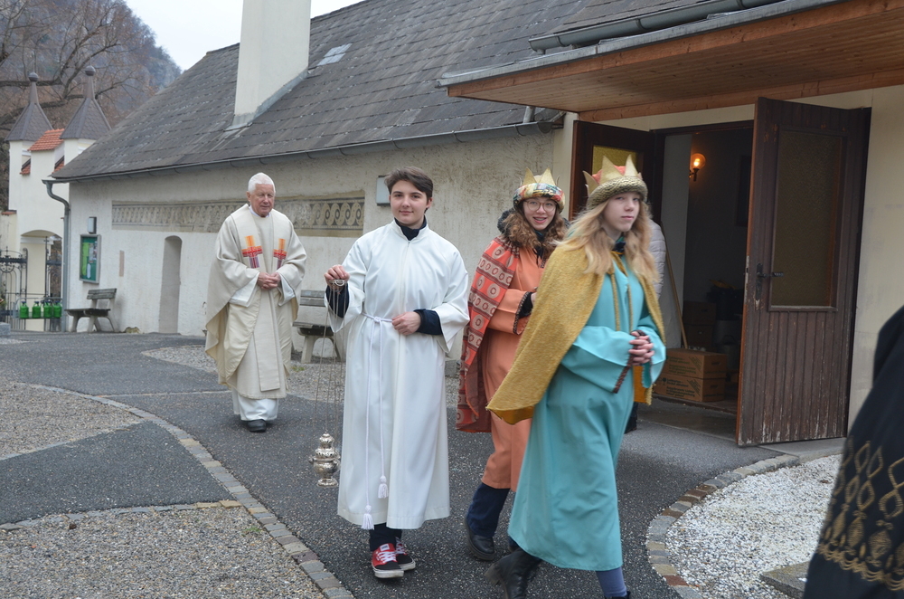 Am Dreikönigstag war es wieder soweit: Die Königinnen und Könige unserer Sternsingeraktion trafen sich sehr zahlreich in der Pfarrkirche in Peggau. Dank vieler Eltern, die ihre Kinder nach Peggau brachten, wurden sie noch einmal mit Gewändern und Kronen ausgestattet und zogen mit Belgleitern und Herrn Prof. Schlacher in die Kirche ein.