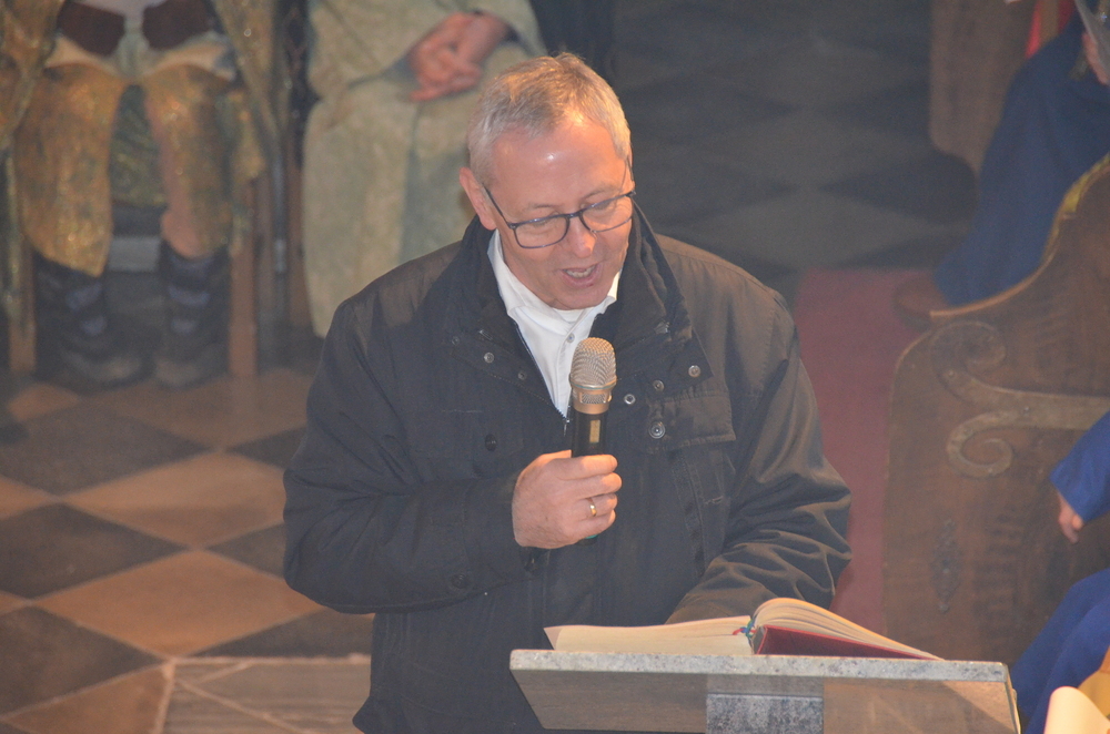 Nach dem Evangelienspiel unter der bewährten Regie von Toni Gschier erzählte Pfarrer Schlacher die Geschichte des Goldes, das die Könige dem Kind in der Krippe darbringen. Es weist auf die Göttlichkeit von Jesus hin, der uns als Kind begegnet und so den Menschen zum Segen wird. Diesen Segen tragen die Sternsinger in die Häuser und auf die Plätze unserer Orte. Sie tragen auch dazu bei, dass das gesammelte Geld zum Segen für Familien in Guatemala und vielen anderen Ländern wird, in denen es Projekte der Dreikönigaktion gibt. Ein großes Vergelt’s Gott allen, die auch heuer wieder zum Gelingen des Sternsingens beigetragen haben und den schönen Betrag von € 10.085,49 ermöglicht haben. Möge uns der Segen Gottes in ein gutes neues Jahr 2024 begleiten.