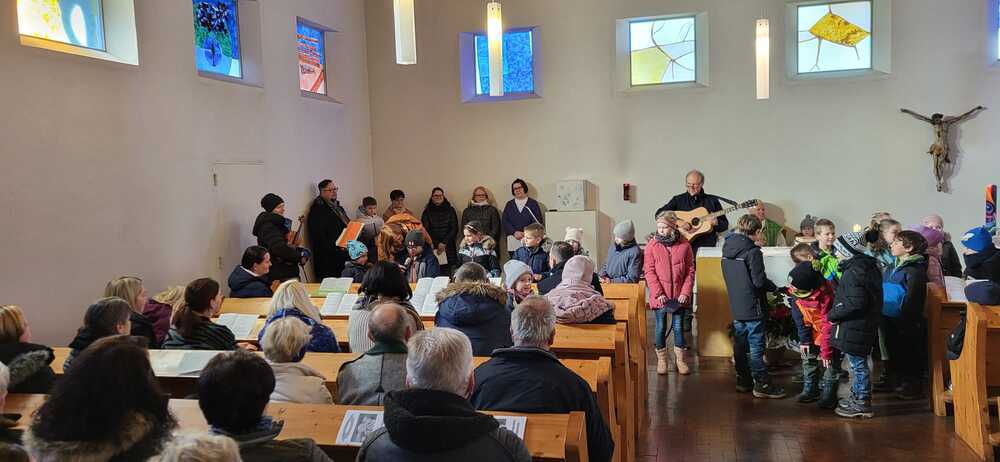 Durch die Unterstützung der Sänger.innen des Erstkommunion-Ensembles unter Katharina Wesener und Toni Gschier wurden wir schon mit den schwungvollen Liedern vertraut.