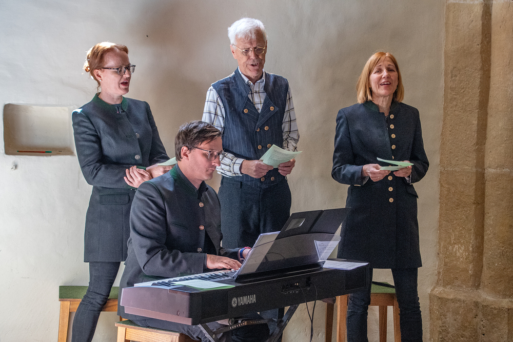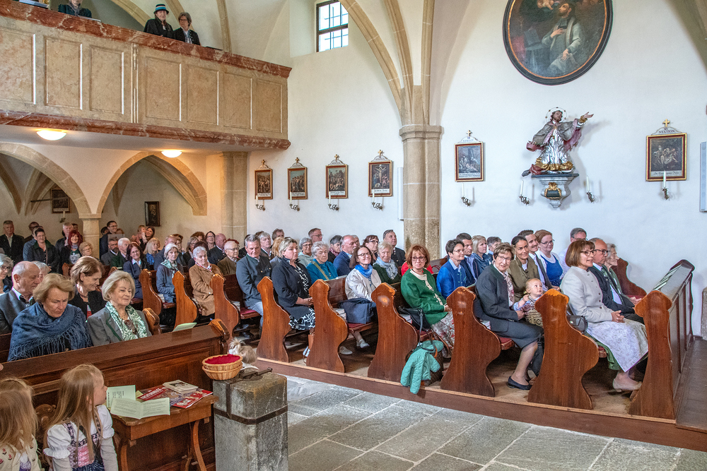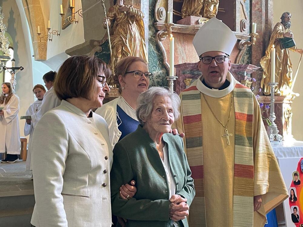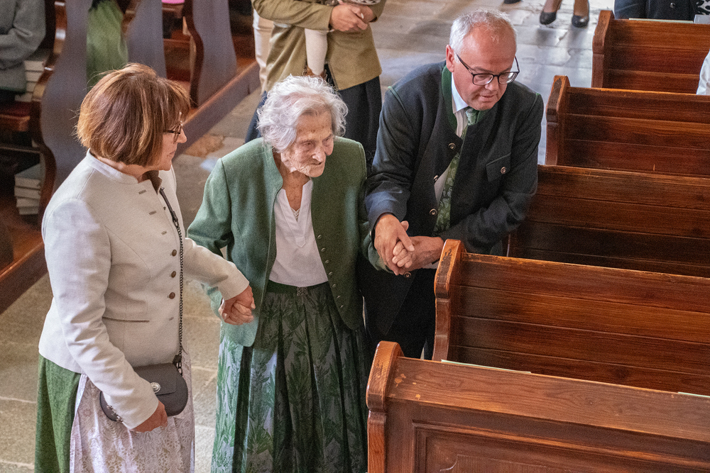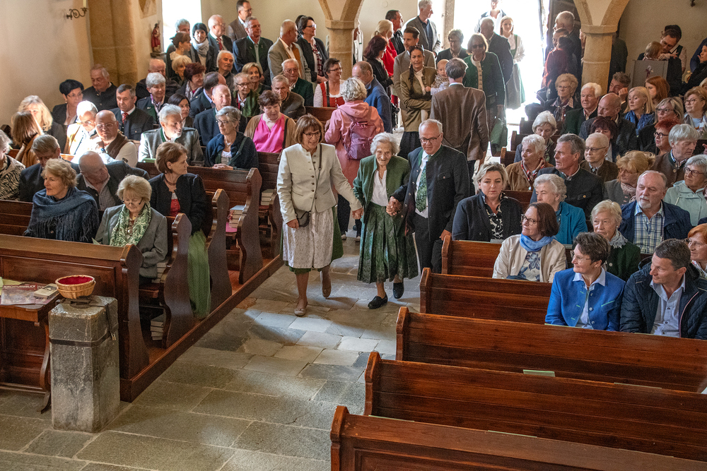 Tochter Gabriele mit Heinz und Tochter Hildegard organisierten einen Dankgottesdienst für die große Familie und die vielen Weggefährten, Nachbarn und Freunden am Vortag des Geburtstages in der Pfarrkirche Deutschfeistritz.