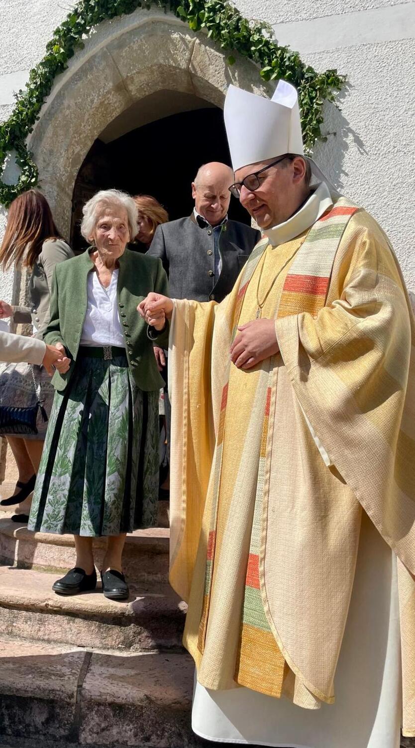 Bischof Hermann Glettler – ihr Neffe – konnte mit dieser großen Weggemeinschaft einen berührenden DANKGOTTESDIENST feiern. Bei der anschließenden Agape konnten sich die Gäste bei Brot/Kuchen sowie Wein/Kaffee stärken und der Jubilarin ausgiebig gratulieren.