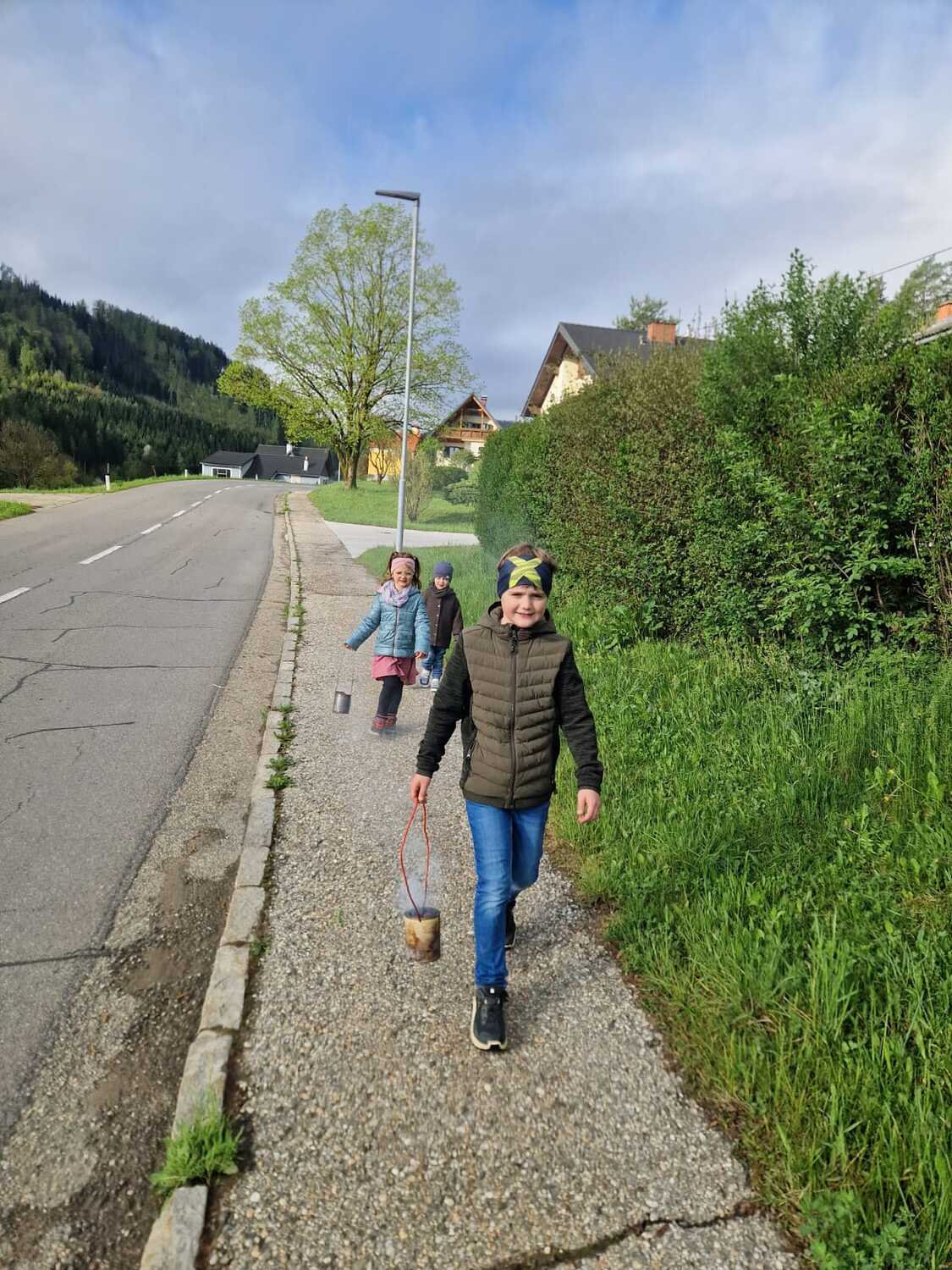 Auch heuer kamen am Karsamstag bereits um 07.00 Uhr in der Früh wieder viele Erwachsene mit ihren Kindern auf den Kirchberg zur Feuerweihe. Pfarrer Dr. Horst Hüttl nahm die Segnung des Feuers und der Schwämme vor.