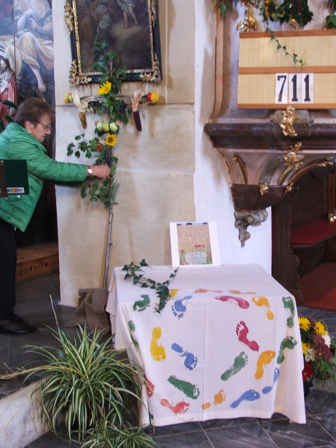 Herr Pfarrer erinnerte bildlich, dass für Alles, das wir selbstverständlich konsumieren, zuvor viel Arbeit geleistet werden muss: Für die Lebensmittel, unser Wasser, die Reinheit der Atemluft - eigentlich für Alles ! - Und dass es sehr angebracht ist, den Betreffenden für ihre Arbeit zu danken !