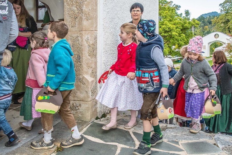 Die Kinder des Pfarrkindergartens zogen feierlich mit einer kleinen Erntekrone in die Kirche ein. Schon Wochen vorher übten sie verschiedene Lieder ein, die sie mit Begeisterung aus voller Kehle sangen. Vertreter der Bauernschaft legten Erntegaben vor dem Altar nieder und für die Bauern berichtete Frau Köppel von den Witterungsbedingungen des abgelaufenen landwirtschaftlichen Jahres, die eine gute Ernte ermöglichten. Sie wies aber auch auf die vielfachen anderen Bereiche unseres Lebens hin, für die wir dankbar sein müssen.