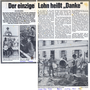 Pfarrhoferöffnung in DoblAm 6. Dezember 1981 wurden nach einem von der Jugend gestalteten rhythmischen Gottesdienst die Pastoralräume im renovierten Pfarrhof von Pfarrer Johann Pilch unter zahlreicher Anteilnahme der Bevölkerung eingeweiht. Der Vorsitzende des Pfarrgemeinderates konnte zu diesem festlichen Anlass auch den Landesjugendreferenten Dr. Rajakovics, Dechant Großschädl, Bürgermeister Kurz sowie den Architekten, Dipl.-Ing. Angerbauer, begrüßen. Für besondere Verdienste beim Bauordenseinsatz wurden Frau Leitl und Herr Mitteregger mit der St.-Martins-Medaille ausgezeichnet. Ziagl & Senda, März 1982, S. 6 |