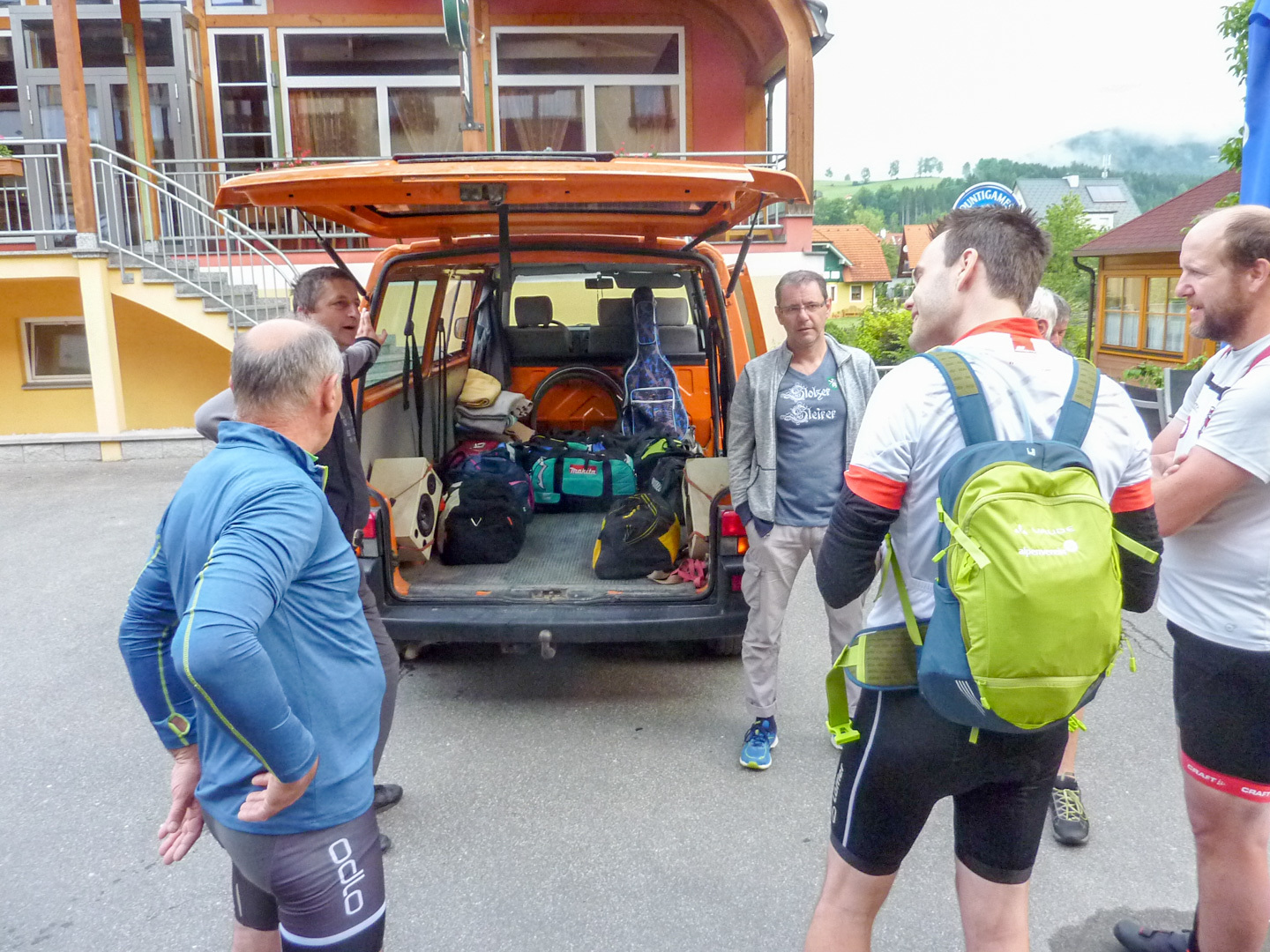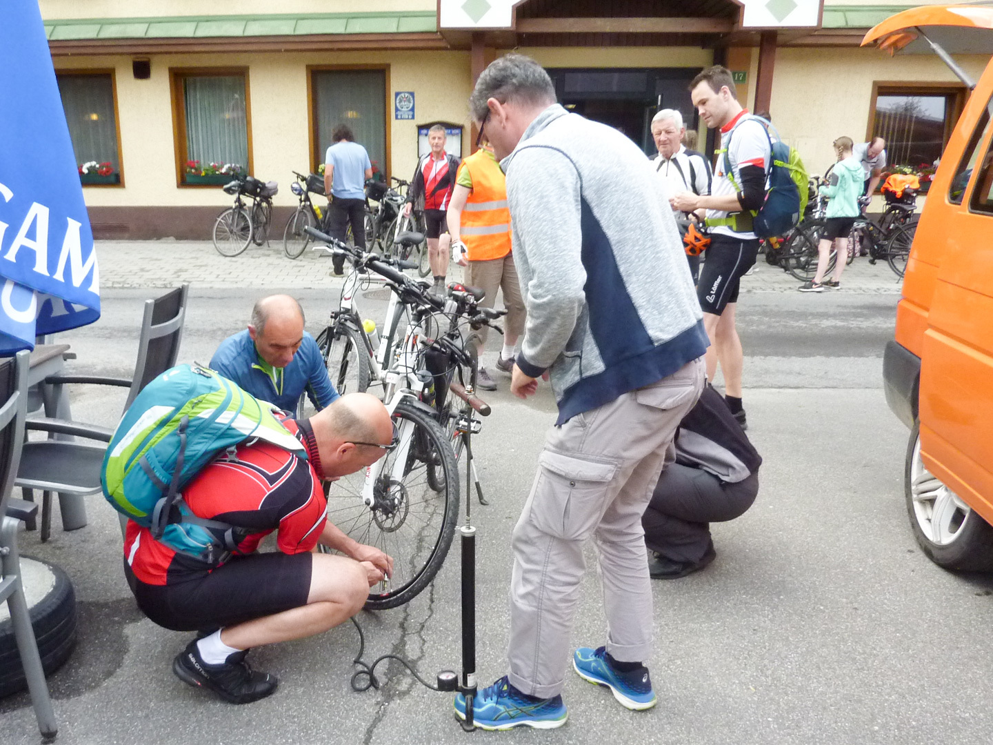 Wie ein Wunder kamen wir an beiden Tagen (1. Tag bis Krieglach: 113 km und 2. Tag bis Mariazell: 62 km) trocken an unser Ziel.