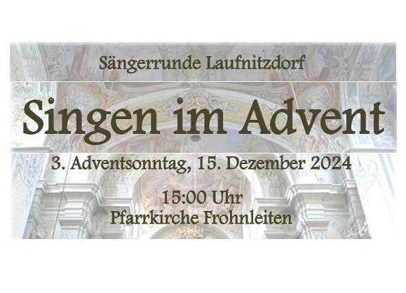 Singen im Advent mit der Sängerrunde Laufnitzdorf am 3. Adventsonntag 15. Dezember um 15:00 Uhr