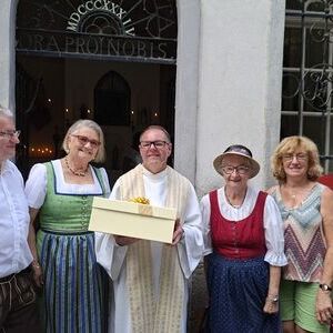 Der Pfarrgemeinderat überraschte Ihn zu seinem 30 jährigen Priesterjubiläum. Die Adriacher Sängerrunde gestaltete die Messe feierlich mit - und als Höhepunkt wurde "Die Ode an die Freude" angestimmt. Der Pfarrgemeinderat überreichte Herrn Pfarrer Ruthofer zu diesem Anlass eine Albe und einen Ledereinband für das Brevier. Pfarrer Ruthofer zeigte sich tief bewegt und sichtlich überrascht.