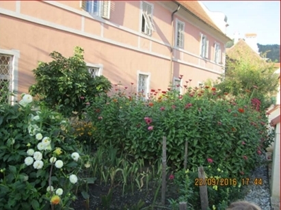 Viele Pflanzen haben wir in Unser Klostergarten unserem Glashaus selbst vorgezogen – einige alte Pflanzenraritäten haben wir bei der Arche Noah gekauft. Viele Freiwillige haben immer wieder beim Jäten, Nachsetzen und beim Ernten geholfen. Unsere Ernten werden im Kloster verarbeitet, verkocht, verbraucht – auch für diverse Feste. Unseren Blumengarten haben wir mit alten Rosensorten erweitert.