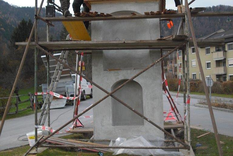 Restaurierung beim Werfenbauer-Kreuz in Adriach am 18. November 2017