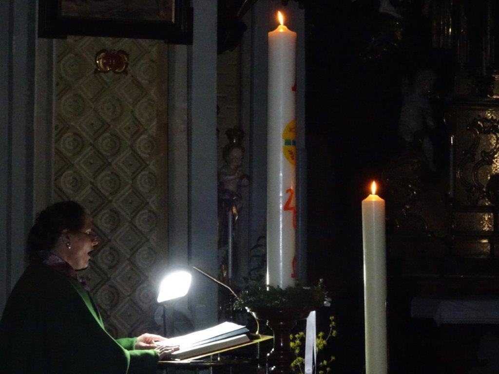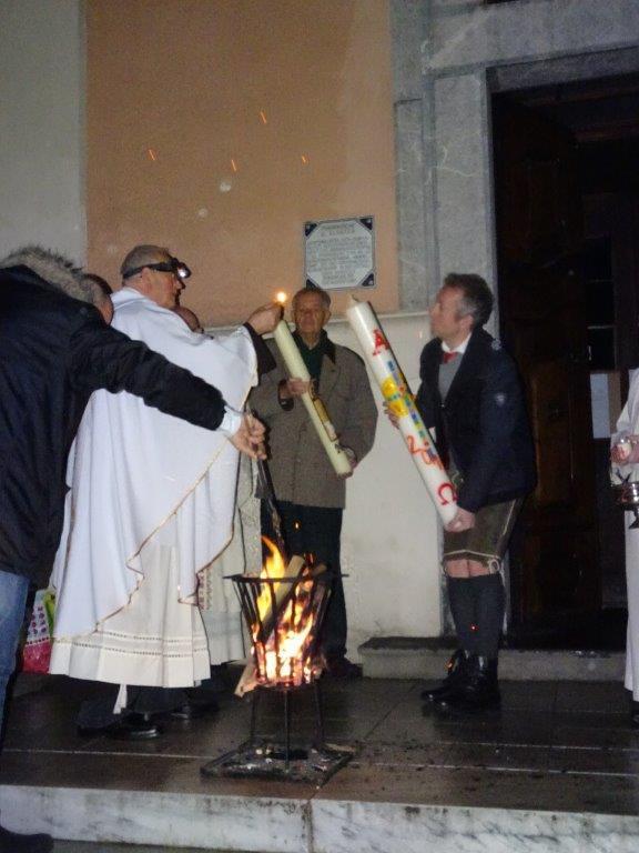 Vom Dunkel zum Licht, vom Tod zur Auferstehung, das war der Inhalt der Osternachtsfeier am Karsamstag um 20 Uhr in der Pfarrkirche. Die Feier der Osternacht, der wichtigsten des Kirchenjahres, begann mit der Entzündung der Osterkerze vor der Kirche. Diese symbolisiert den Übergang vom Dunkel zum Licht. Der traditionelle Ostergruß lautet: "Christus ist auferstanden - er ist wahrhaft auferstanden! Halleluja!"