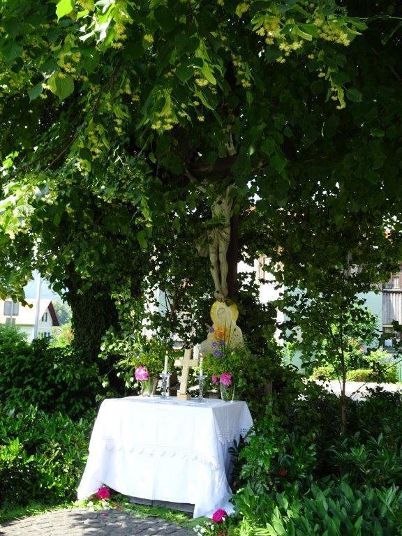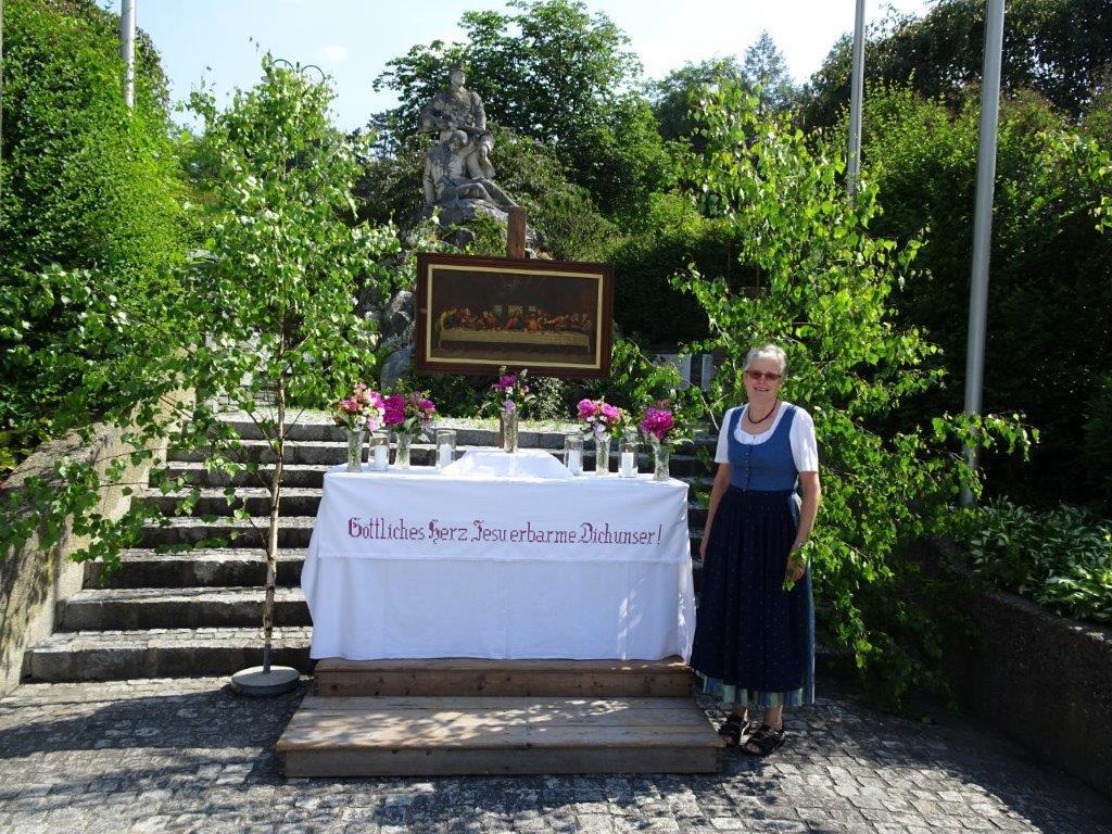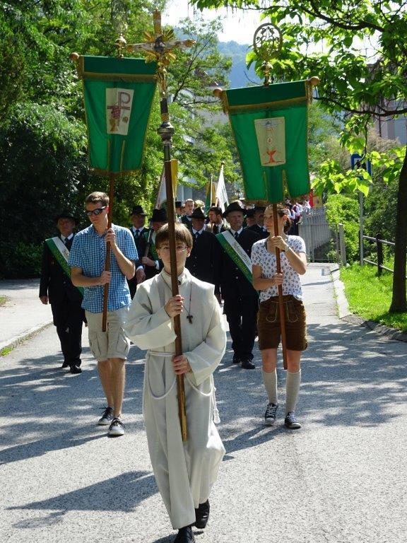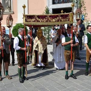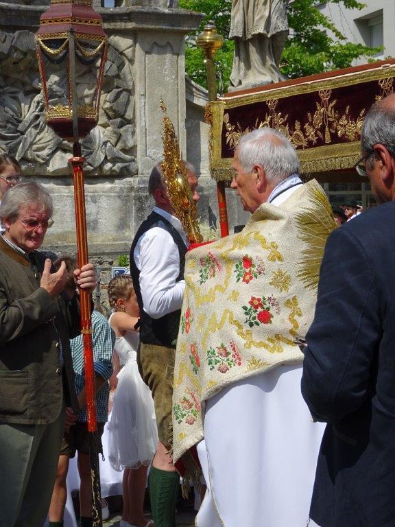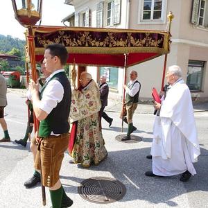 Die Prozession, an der einige Erstkommunionkinder und etliche örtliche Vereine, wie Musikverein, Landjugend, Kameradschaftsbund, Oberlandler, Hocholma teilgenommen haben, endete dann mit einen Segen und dem "Großer Gott wir loben Dich" in der Pfarrkirche.