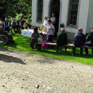 Die jetzige Kapellen-Betreuerfamilie Gabi & Josef Fuchs vlg. Leeb in der Pölla, schmückte das schöne Zeichen des Glaubens festlich mit Blumen und bewirtete die Anwesenden im Anschluss an den Gottesdienst köstlich. Ein herzliches Vergelt`s Gott hierfür