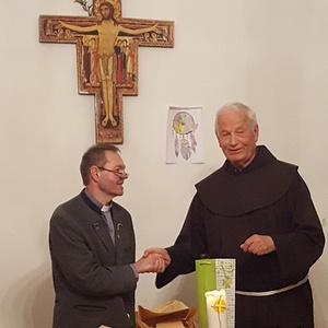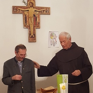Da der neue Pfarrer am 27.März seinen 50sten Geburtstag gefeiert hatte, gratulierte man ihm und hieß ihn mit einem Glas guten Weins willkommen.