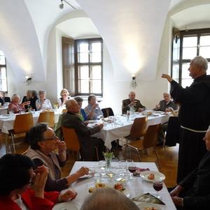 Die launige Begrüßung nahm um 14.30 Uhr Hausherr Pater Simon vor. Anschließend kredenzten die Mitglieder der Katholischen Frauenbewegung köstliche Mehlspeisen und Kaffee auf. Später servierten sie leckere Brötchen, Wein und Wasser. Zwischendurch sorgte das Geschwister-Trio Zöhrer mit ihrer schönen Musik für eine tolle Stimmung. Die Anwesenden unterhielten sich bis zum frühen Abend glänzend. Die älteste Jubilarin war mit 93 Jahren Maria Trieb aus Rothleiten, ältester Gast bei den Männern war Rupert Windisch aus Gams mit 97 Jahren.