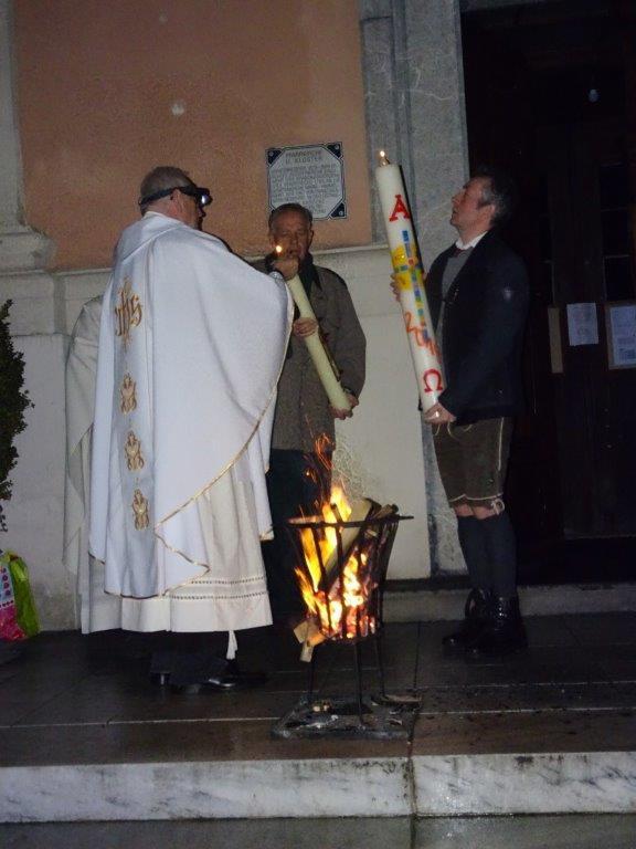 Vom Dunkel zum Licht, vom Tod zur Auferstehung, das war der Inhalt der Osternachtsfeier am Karsamstag um 20 Uhr in der Pfarrkirche. Die Feier der Osternacht, der wichtigsten des Kirchenjahres, begann mit der Entzündung der Osterkerze vor der Kirche. Diese symbolisiert den Übergang vom Dunkel zum Licht. Der traditionelle Ostergruß lautet: "Christus ist auferstanden - er ist wahrhaft auferstanden! Halleluja!"