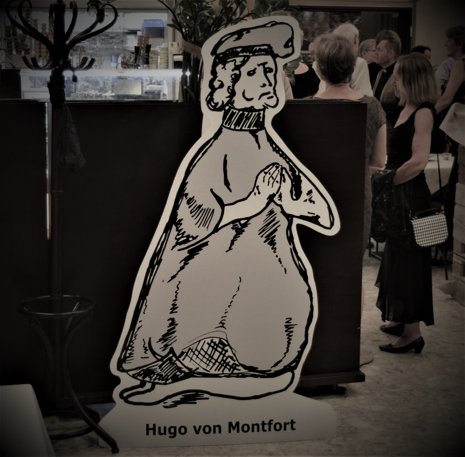 Vermutlich um 1414 – also auf dem Höhepunkt seiner Macht – ließ Graf Hugo von Montfort in Wien oder in der Steiermark jene Prachthandschrift seiner poetischen Werke anfertigen, die in der Heidelberger Universitätsbibliothek liegt: 40 Dichtungen in frühneuhochdeutscher, stark alemannisch gefärbter Sprache überliefert diese z.T. bebilderte und mit 10 Notenaufzeichnungen versehene Handschrift, aber nur die ersten 38 Texte dürften tatsächlich von Hugo stammen, denn Nr. 39 und 40 wurden erst nach seinem Tod eingetragen und weisen auf eine fremde Autorschaft hin. In den ersten 38, sicher ‘echten’ Hugo-Texten begegnet uns (in Form poetischer Reden, Briefe und Lieder) ein tief gläubiger, geradliniger Mensch, der sich von hohen moralischen Idealen beseelt zeigt und neben aller Lebensfreude auch bedrückende Erfahrungen mit Leid und Tod reflektiert.