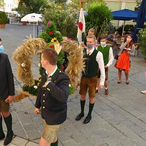 Wir bedanken uns bei allen Mitwirkenden in der Vorbereitung und Durchführung dieses Festes: z.B. bei den Bäuerinnen für die große Erntekrone in der Kirche, beim Musikverein, bei allen Fahnen- und Leuchter-Trägern...