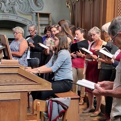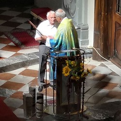 Tragischerweise wurde der Feiertag vom plötzlichen Tod unseres langjährigen Organisten und Chorsängers Franz Grasmugg überschattet. So erhielt das abschließende Segenslied, das eigentlich als Gruß und Dank des Chors an unseren scheidenden Pfarrer Pater Simon gedacht war, eine besonders tröstliche Bedeutung. Das für das 800-Jahr-Jubiläum der Diözese Graz-Seckau komponierte Stück verwendet im Refrain einen Text von Edith Stein: „Ohne Vorbehalt und ohne Sorgen leg´ ich alle Zeit in deine Hand“.