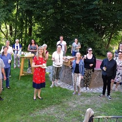 Während des Corona-Lockdowns entstand die Idee, unser Chorjahr mit einer gemeinsamen Andacht zu beschließen und damit gleichzeitig einen Neubeginn des Chorsingens zu feiern. Pfarrer Ronald Ruthofer fand sehr persönliche Worte für uns Sängerinnen und Sänger und betonte den Wert der Kirchenmusik als „systemrelevant“ für die Messfeiern. Es war sehr schön, wieder miteinander zu singen und zu beten, und wir ließen unser Treffen noch gemütlich im Klostergarten ausklingen.