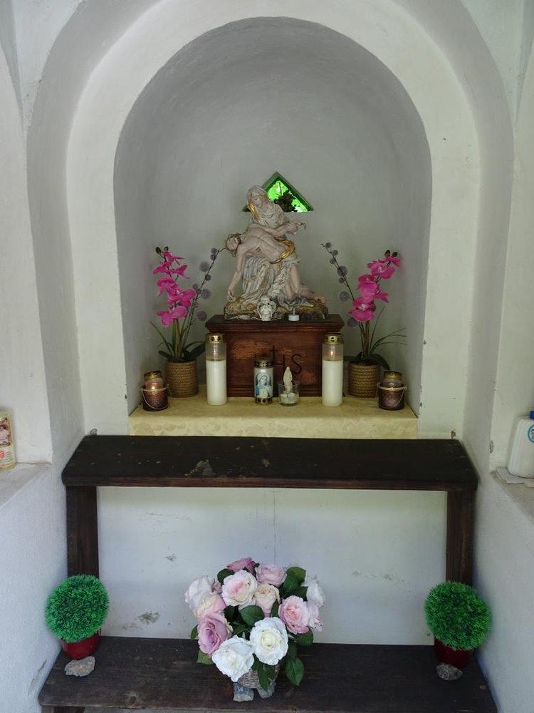 Herzstück war in der Mitte eine fast ein Meter hohe Pieta aus Gips. Im Jahre 1945 machten die Soldaten der russischen Besatzungsarmee am naheliegenden Hof Station. Fast jeden Tag kamen einige gläubige Russen zu diesem Bildstock und verrichteten dort laut betend ihre Andacht.