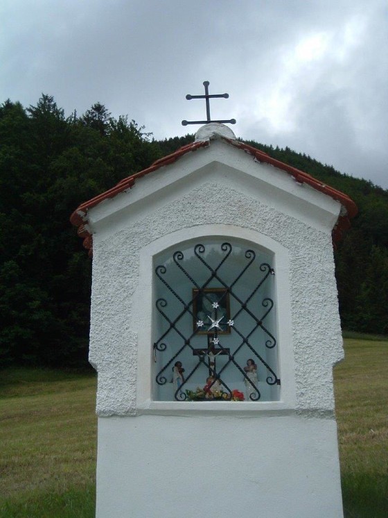 Dieses Zeichen des Glaubens steht am rechten Ufer des Tyrnauer Baches – kurz vor der Ortschaft Schrems – auf einer Wiese, die früher auch „Kreuzacker“ genannt wurde. Es beherbergt hinter einem kleinen, verglasten Gitter ein schönes Marienbild und Statuen von verschiedenen Heiligen.