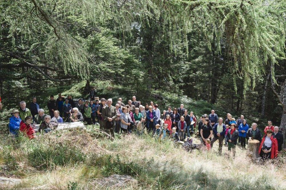 Die Segnung nahm im Rahmen einer Gipfelmesse Pater Simon Orec mit rund 100 Messbesuchern vor. Großer Dank gebührt den Pfarrbewohnern Josef Affenberger für die Durchführung der erforderlichen Holzarbeiten, es war damals bereits sein sechstes Gipfel- oder Marterlkreuz, sowie Walter Kögler für die Bewerkstelligung der schwierigen Maurerarbeiten auf dem felsigen Plateau und dem Ehepaar Gabriele und Peter Prietl vulgo Fuchs, Hofamt 26, auf deren Grund das Gipfelkreuz errichtet werden konnte.