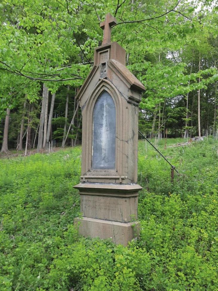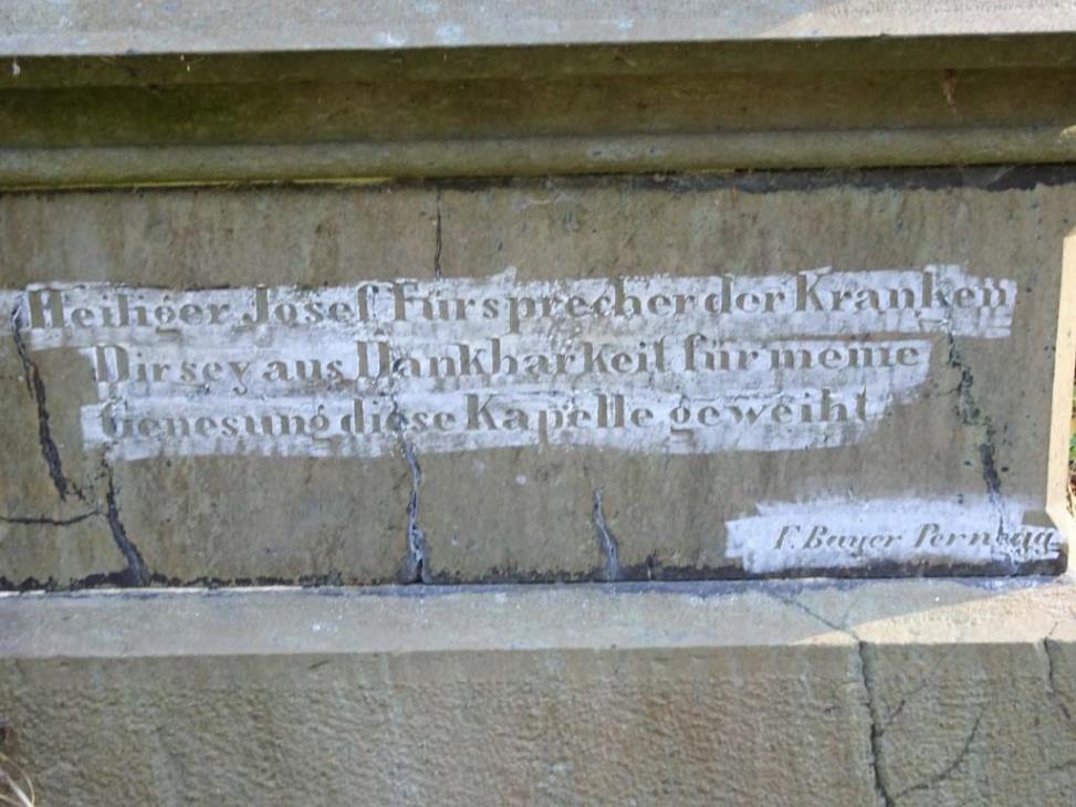 Unterhalb des Anwesens steht ein ansprechendes Kleindenkmal. Es wurde bereits 1872 unweit der Ruine Pfannbergerrichtet und ist dem Heiligen Josef geweiht. Nach Überlieferung soll dieses Kreuz an die Genesung einer Gräfin erinnern, die gerne in dieser ruhigen Gegend spazieren gegangen ist. Das geht auch aus der Inschrift hervor, die im Sockel eingemeißelt ist:
