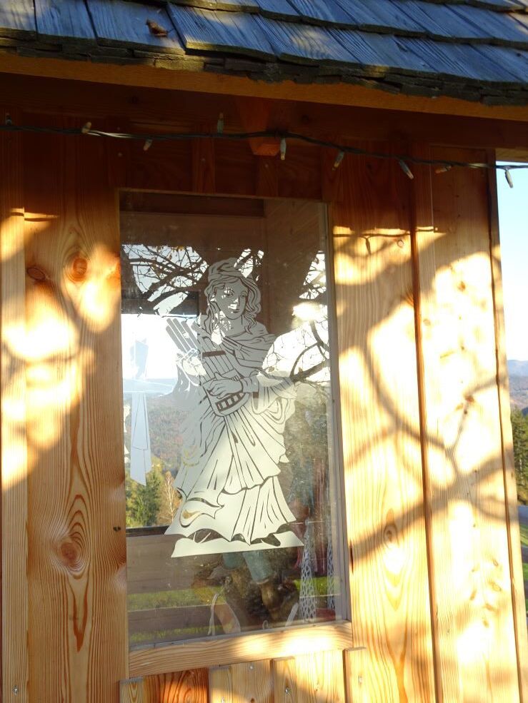 Man wollte mit dem gelungenen Kapellenbau einen kleinen Kraftplatz für die Familie schaffen, aber auch für die Öffentlichkeit zugänglich machen. Realisiert wurde das schöne Kleindenkmal in Eigenregie mit tollen Freunden und Nachbarn mit Lärchenholz aus eigenem Wald auf einem festen Betonfundament in unmittelbarer Nähe eines Kirschenbaums innerhalb eines halben Jahres. Die versperrbare Eingangstüre besteht aus Glas, worin die „Betenden Hände“ und zwei Musikinstrumente eingeätzt sind.