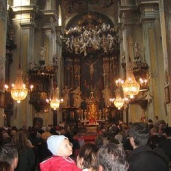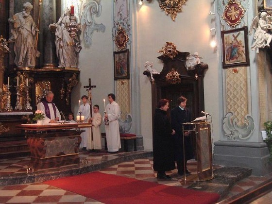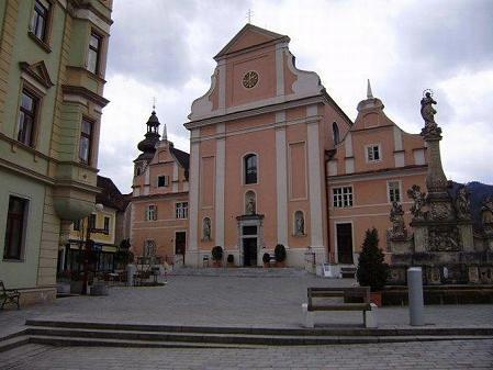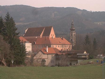Die Kirche wurde als Klosterkirche des Servitenklosters zwischen 1679 und 1689 von Jakob Schmerlaib erbaut. Im Jahr 1701 wurde sie Mariä Himmelfahrt geweiht. 1763 durch ein Feuer schwer beschädigt wurde sie in den folgenden Jahren wieder aufgebaut. Der Wiederaufbau erfolgte ohne den ursprünglichen Kirchturm, der sich an der Giebelfassade befand. Im Jahr 1786 ging das Pfarrrecht von der St. Georgkirche in Adriach an die neue Kirche in Frohnleiten über. Zwischen 1826 und 1845 gehörte die Kirche dem Redemptoristenorden, zwischen 1845 und 1967 wieder dem Orden der Serviten an. Ab da wurde die Kirche vom Franziskanerorden betreut. Im Jahr 1964 wurde sie restauriert. Nach mehr als 50-jähriger Seelsorgetätigkeit verließen die Franziskaner aus der Provinz Mostar wegen Nachwuchsmangel Ende August 2018 das Kloster in Frohnleiten. Die Seelsorge wird seitdem von der Diözese Graz-Seckau mit Diözesanpriester sichergestellt. (Quelle Wikipedia)