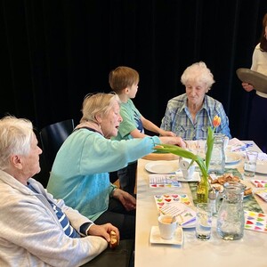 Frau Michaela Moser und Frau Susanne Schreiner überraschten die anwesenden Senioren heute mit dem Besuch einiger Kinder aus der Nachmittagsbetreuung. Der Raum war gefüllt mit lebendiger und fröhlicher Stimmung. Beim gemeinsamen Spielen mit Jung und Alt wurde viel geplaudert und gelacht. Die Kuchenteller leerten sich rasch und bei Kaffee, Wein und gesponserten Säften, waren alle Gäste bestens versorgt.