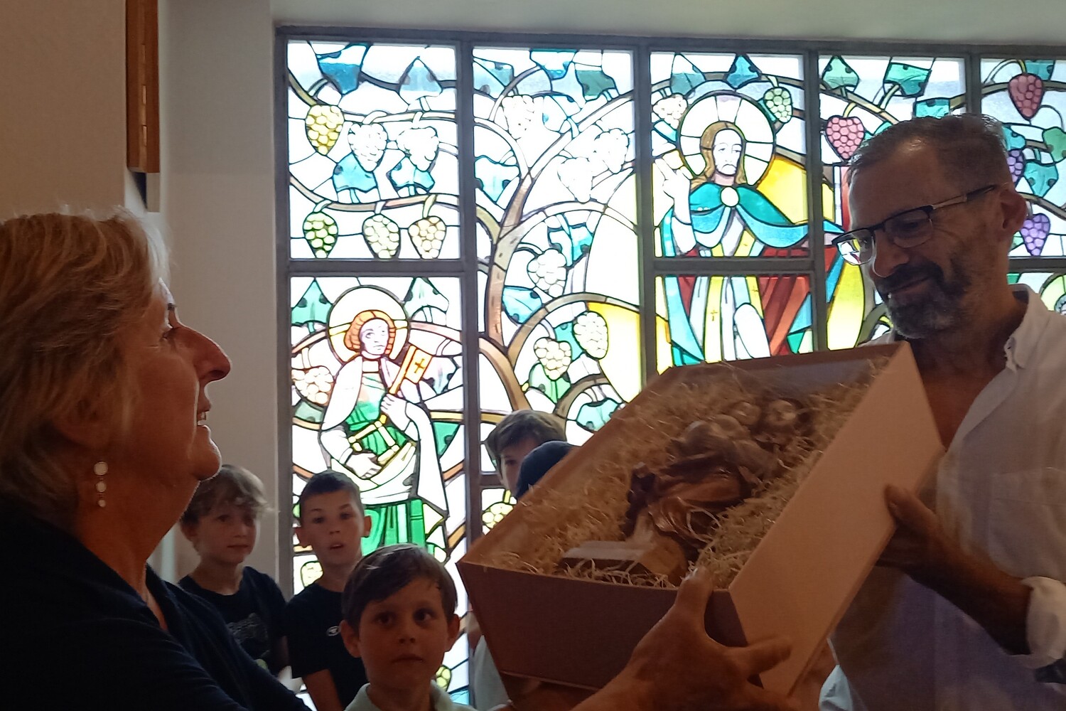 Pfarrer Mag. Schneeflock segnete die Statue bei der Übergabe - und mit ihr auch Maria und ihre Familie. Wie eine Mutter ihre Kinder immer im Herzen trägt, tragen auch wir die Erinnerung an die Zeit mit Maria im Herzen.