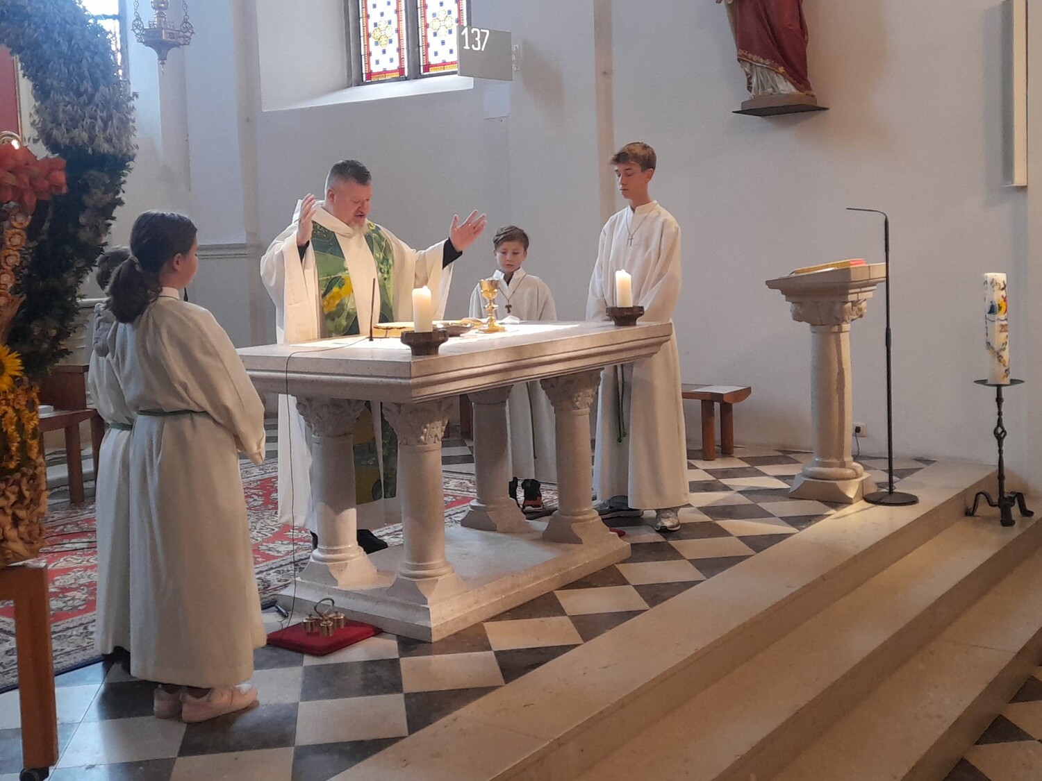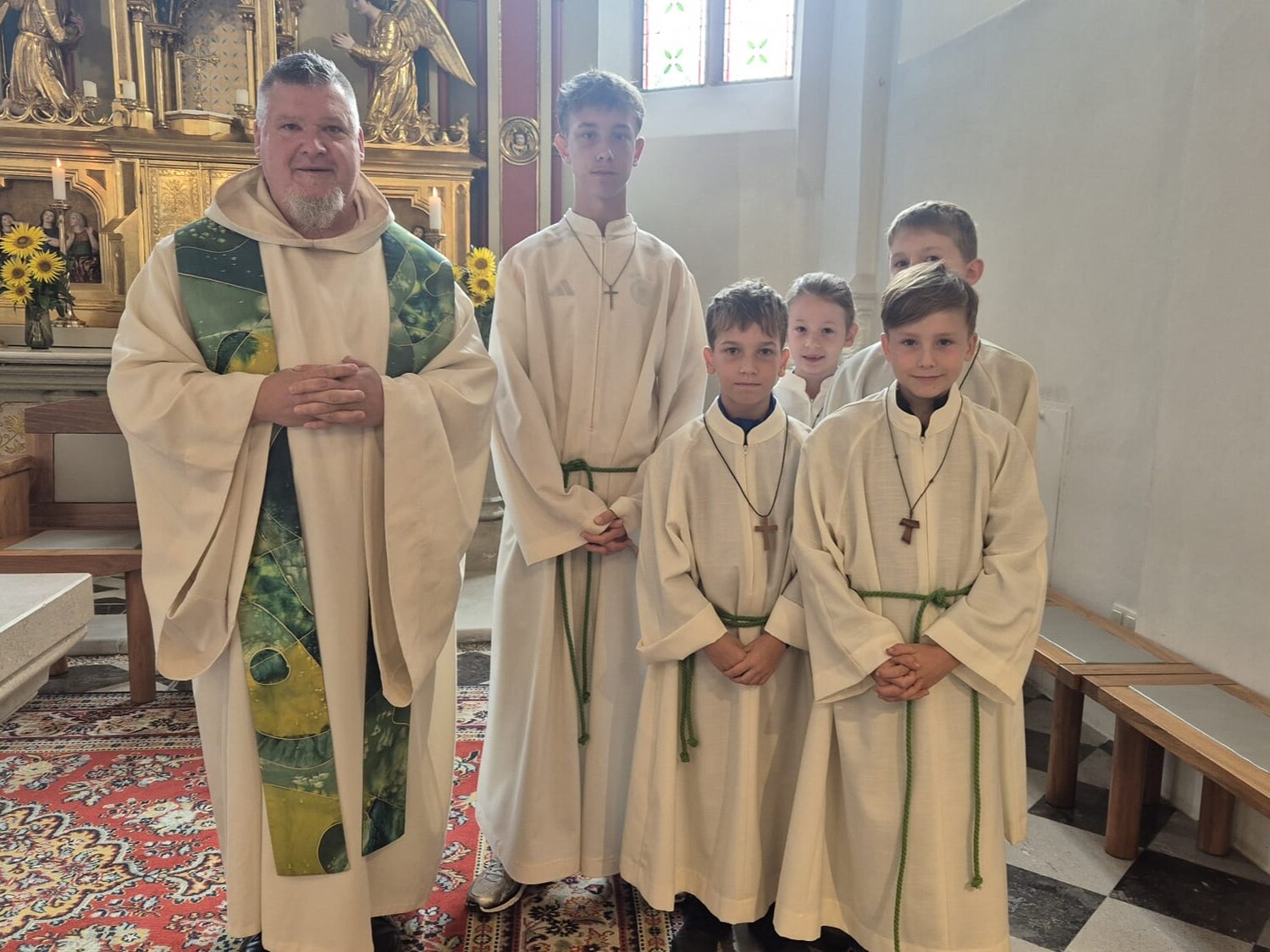 Am 12. Oktober durfte die Gemeinde im Zuge einer Heiligen Messe die neuen Ministranten in ihrem Dienst begrüßen. Es erfolgte die offizielle Einkleidung während der Messe, bei der die jungen Minis das erste Mal in eine Ministrantenalbe schlüpfen durften.