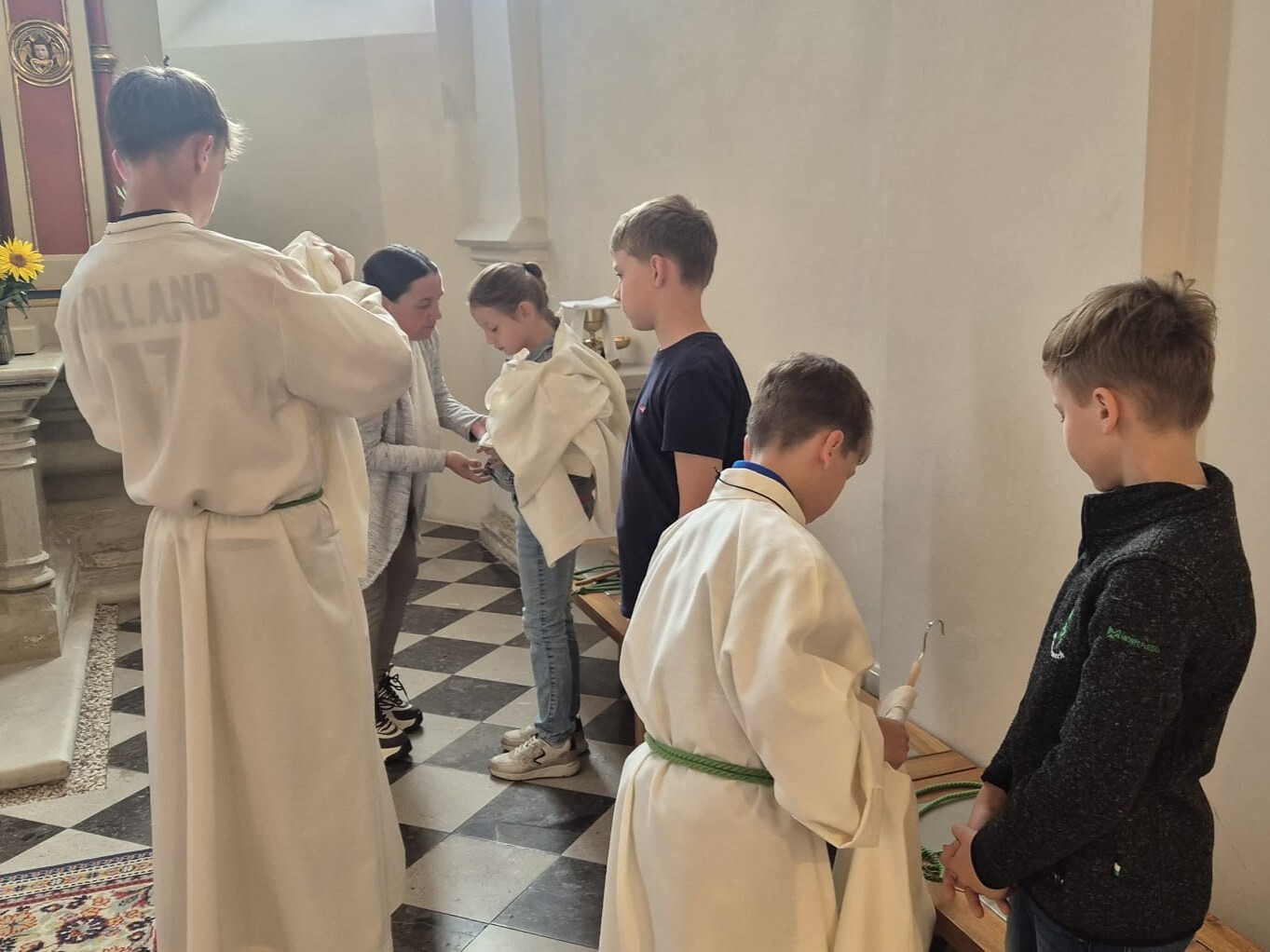 Im Rahmen einer Schnupperstunde, durften interessierte Kinder die Aufgaben der Minis kennenlernen und einige entschieden sich dazu, unseren Pfarrer bei den Messen zu unterstützen.
