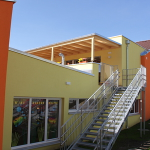 - Gestaltung der gemeinsamen Spielflächen von Kindergarten und Kinderkrippe.